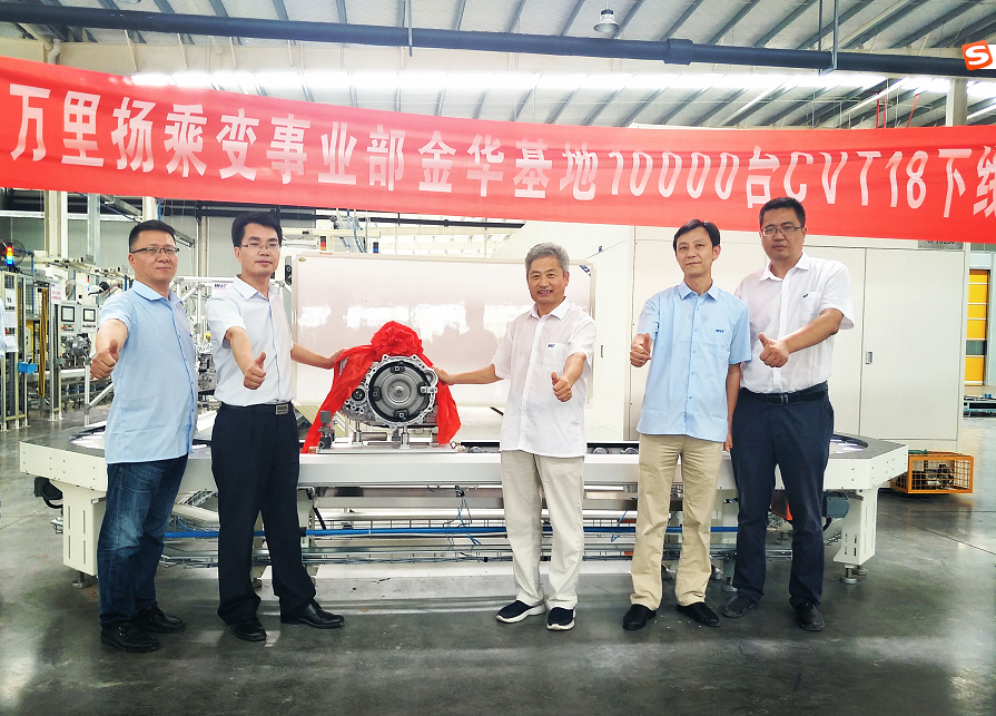 万台新纪元,扬帆新梦想。2019年8月4日下午15:00分,tyc5997太阳集团乘变事业部金华基地迎来了新的里程碑——第10000台CVT18变速器身披“红袍”从生产线缓缓流出。股份公司总裁顾勇亭,股份公司副总裁兼乘变事业部总经理张志东,乘变事业部金华基地总经理赵继武、副总经理袁群星,乘变事业部营销公司副总经理马强及乘变事业部金华基地员工共同见证了这一重要时刻。