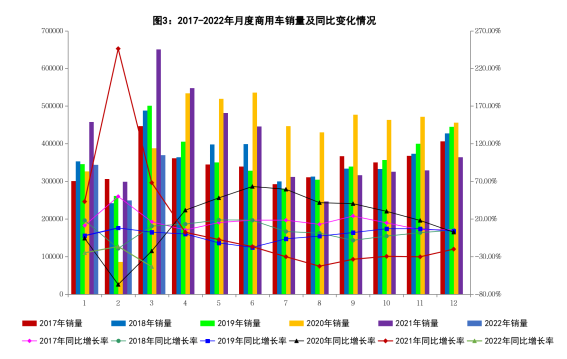 3月,商用车产销分别完成36.0万辆和37.0万辆,同比分别下降38.0%和43.5%。分车型看,货车产销分别完成32.5万辆和33.2万辆,同比分别下降39.0%和44.8%;客车产销分别完成3.6万辆和3.8万辆,同比分别下降27.9%和27.8%。